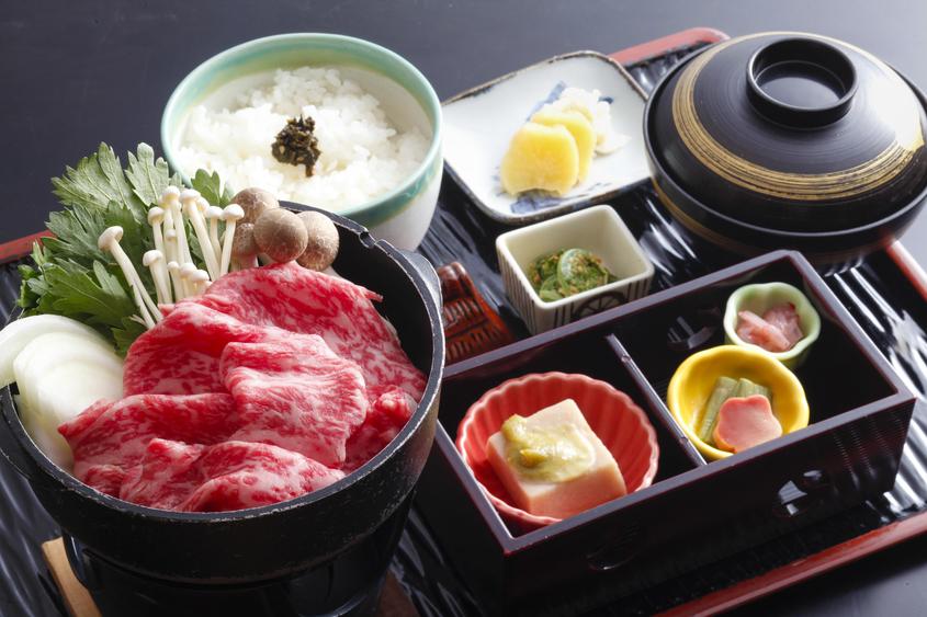 昼食は110余年の歴史「枕川楼」にて黒毛和牛すき焼御膳