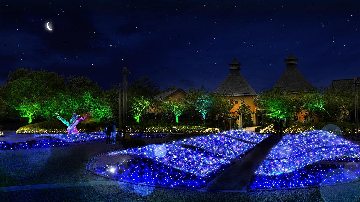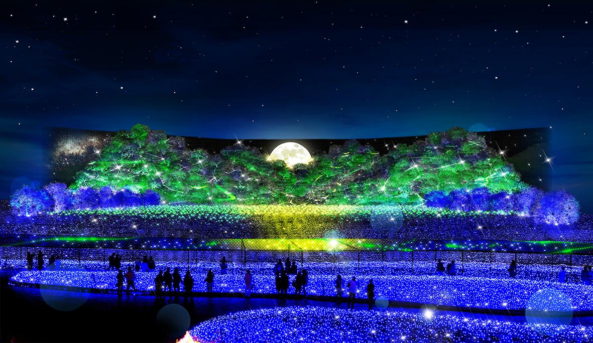 国内最大級のスケールと世界最高峰のクオリティで繰り広げられる、なばなの里のイルミネーション。本物の電球が放つ美しい輝きにこだわり、LED電球だけを使用。他では真似のできないような時間と手間をかけ“本物力”を追及したイルミネーションを展開する。見どころは、8000坪の広大な敷地に広がる、超巨大テーマイルミネーション。今回は「さくら」と題して、桜が咲き誇る色鮮やかな里山の情景や四季の美しい移り変わりなどを演出。