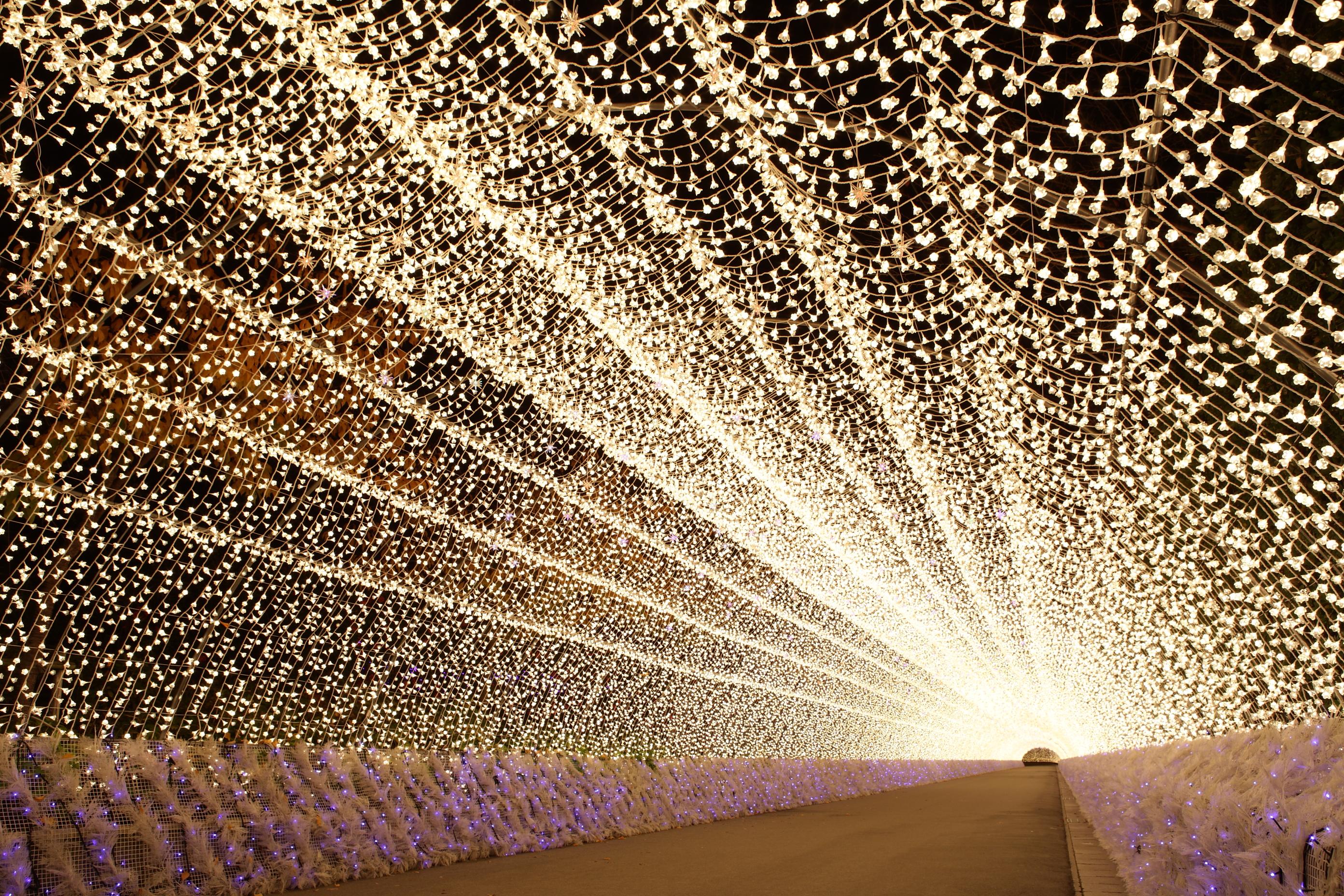 国内最大級のスケールと世界最高峰のクオリティで繰り広げられる、なばなの里のイルミネーション。本物の電球が放つ美しい輝きにこだわり、LED電球だけを使用。他では真似のできないような時間と手間をかけ“本物力”を追及したイルミネーションを展開する。見どころは、8000坪の広大な敷地に広がる、超巨大テーマイルミネーション。今回は「さくら」と題して、桜が咲き誇る色鮮やかな里山の情景や四季の美しい移り変わりなどを演出。