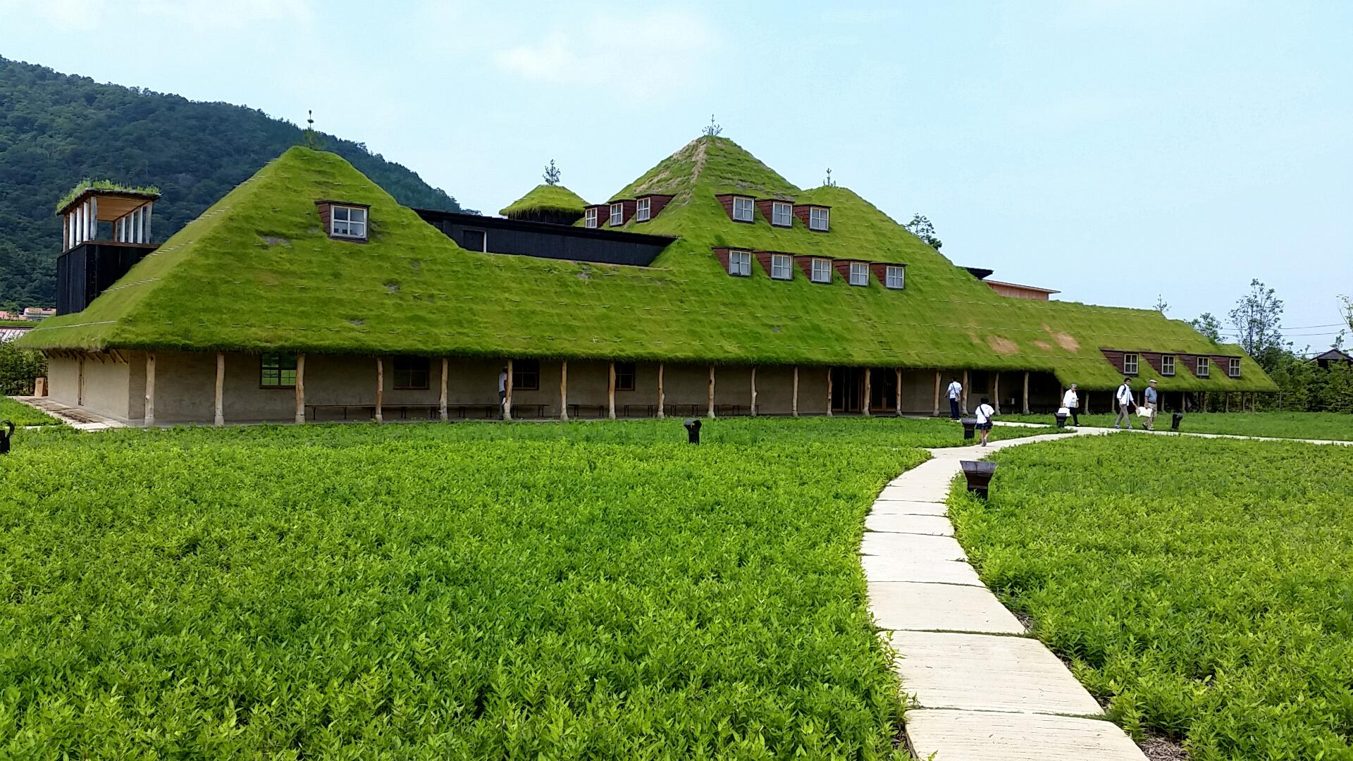 屋根一面が芝におおわれた、ラ・コリーナ近江八幡のメインショップ。広々とした吹き抜け空間の1階に和・洋菓子の売場が並びます。和菓子売場では、たねやの全商品を取り揃えるほか、職人が目の前でお菓子を仕上げる「できたて工房」を併設。バームクーヘンを使った新商品が登場する洋菓子売場は、クラブハリエ最大のバームクーヘン専門店に。また、2階のカフェでは自然を感じる開放的な空間で、焼きたてバームクーヘンをお楽しみいただけます。ユニークなデザインと栗の木が印象的な建物は、建築家・建築史家の藤森照信氏によるもの。ラ・コリーナ近江八幡の玄関口となる「メインショップ」から、たねや・クラブハリエのさらなる魅力をお届けします。