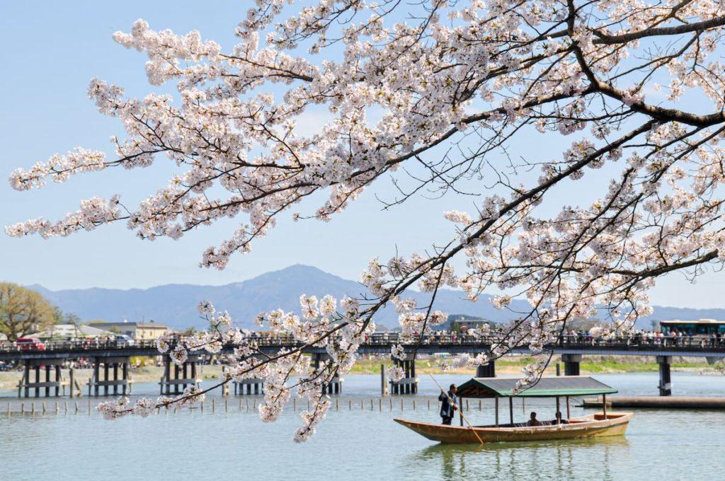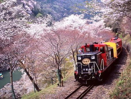 京都を彩る嵐山桜めぐり!嵯峨野トロッコ列車と平安時代の舟遊び屋形船でお花見遊覧