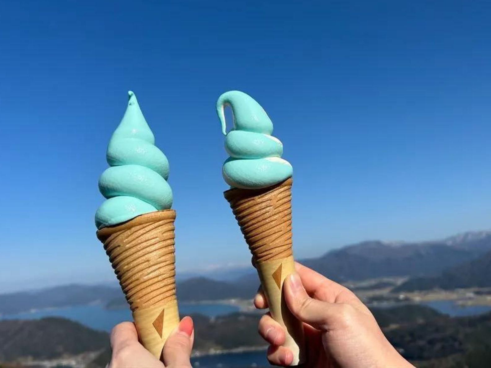 食後には、名物幸せを呼ぶ「レインボーブルーソフト」を