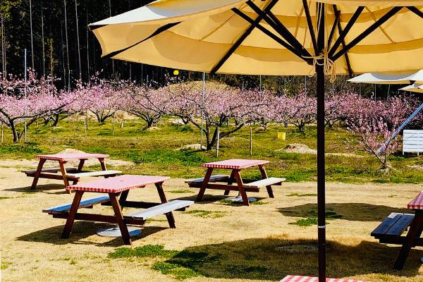 食後は高級果物として有名な岡山の“白桃”狩りとその場での試食お楽しみいただきます。(1個は狩ってお持ち帰り、1個はご試食の計2個)