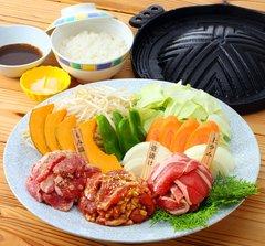 まずはヒルゼン高原センタージョイフルパークで牛とラムと豚のミックスジンギスカンをお召し上がりいただきます。