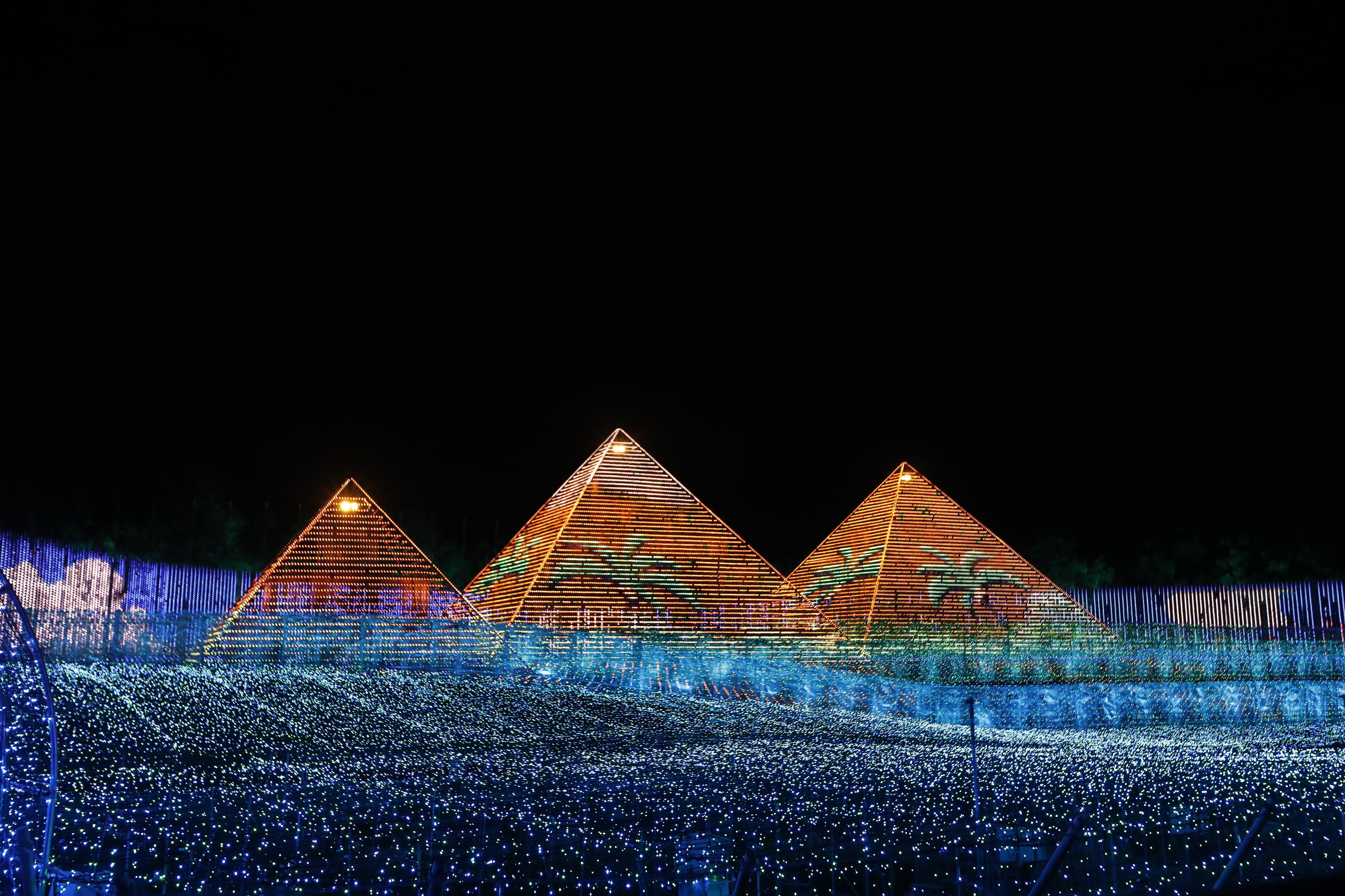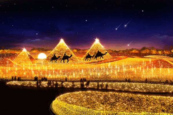 2004年から開催し、今年で20回目の節目を迎えた「なばなの里イルミネーション」。2023-2024のテーマは「黄金のピラミッド」。世界遺産にも登録されているエジプトのピラミッドを舞台に、黄金のピラミッド・ナイルの繁栄・エジプト神話の3つのストーリーを光と音でダイナミックに演出します!