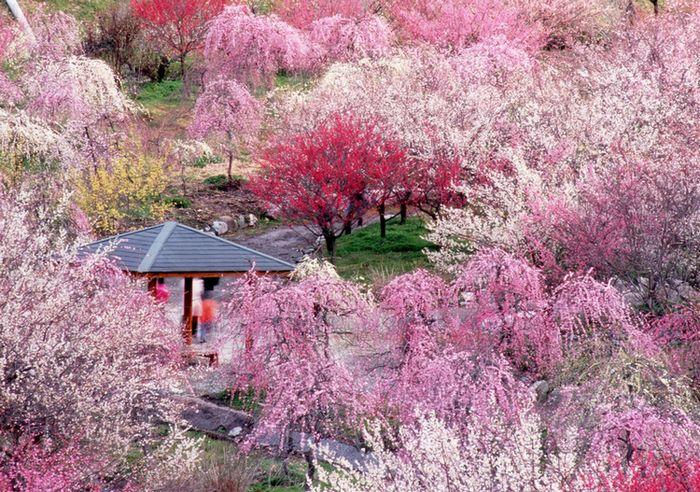東海エリア最大級の梅林公園。38万平方mの敷地に、多品種の梅が咲く。鈴鹿山脈を一望できる高地にあり、その眺望と梅とのコントラストが美しい。