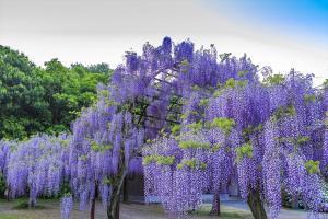 種類の多さでは全国でもトップクラス!花の房を1メートルも垂らした藤や、総延長が500メートルもある巨大な藤棚など見ごたえ十分。気になるあの人と一緒にどうぞ!