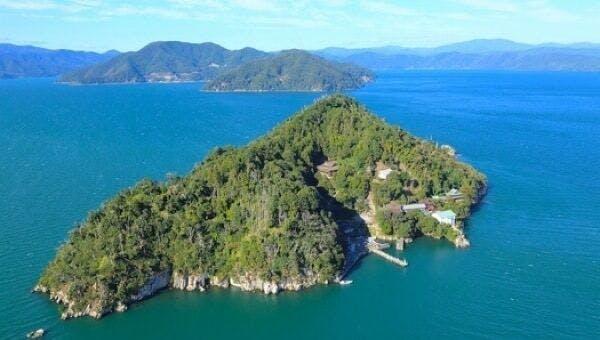 沖合約6kmに浮かぶ周囲2kmあまりの小島で、宝厳寺と都久夫須麻神社が祀られています。