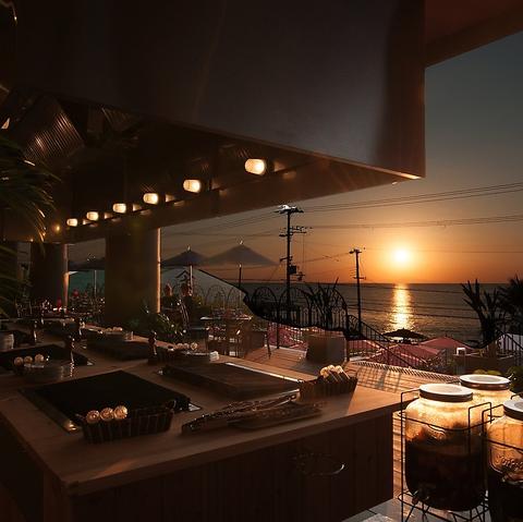 ため息が出るほどのサンセット。オーシャンテラスでディナータイム。光と音の淡路島西海岸!絶景オーシャンビューで淡路の夜を彩るオーシャンテラスでオーシャンビュッフェと淡路牛ステーキをお楽しみ下さい。