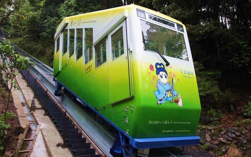 ●鞍馬寺へ。往路は日本一短い鉄道(約200㍍)を利用。深い木立ちの中で恋愛パワーをいただきましょう。