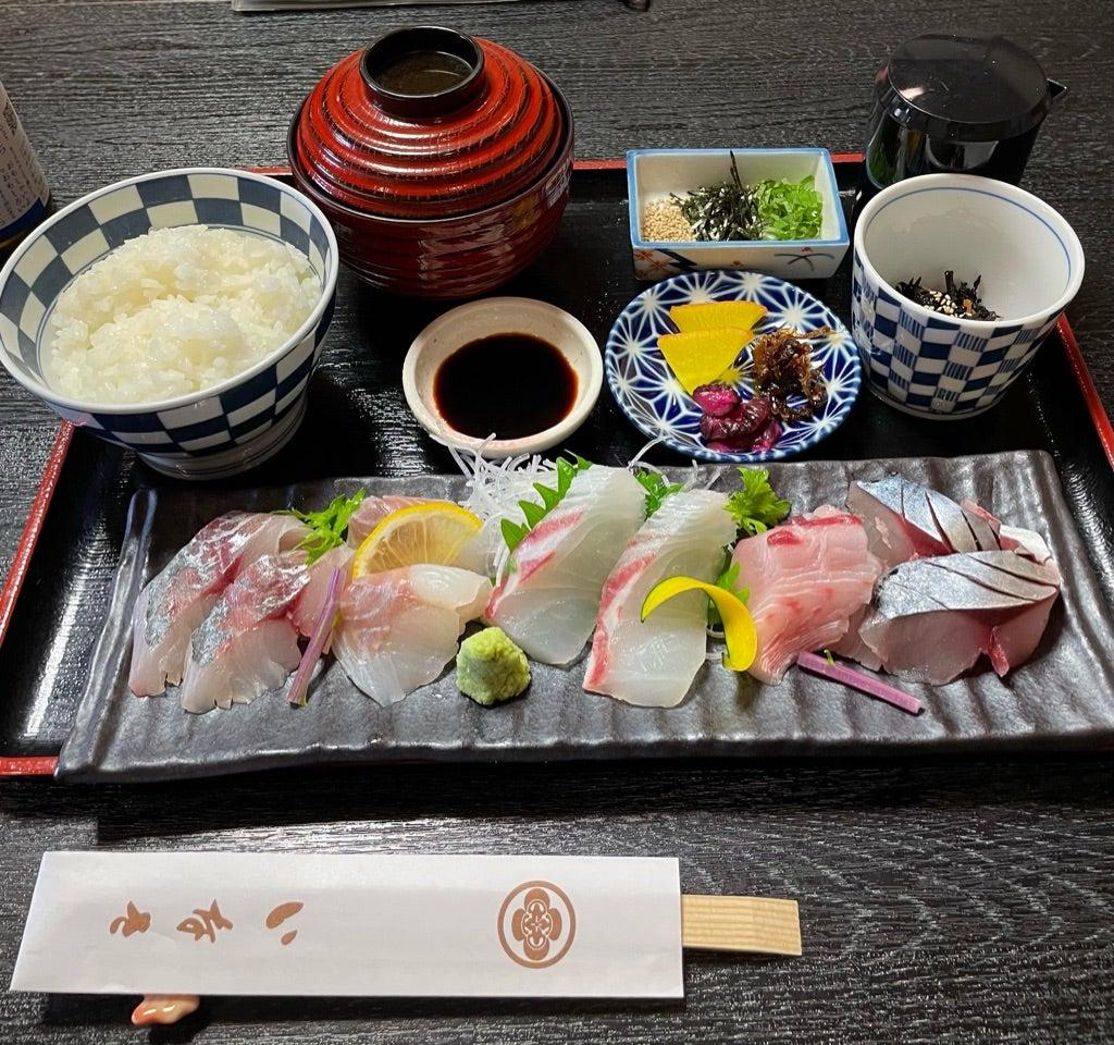 ●昼食は地元でも人気・加太漁港の活魚料理店で旬の刺身御膳と味変で海鮮丼をご賞味下さい