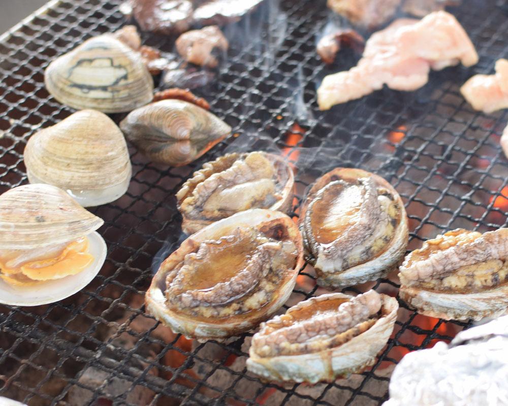 ・地元市場「青空市場」では、新鮮な魚介が楽しめます。