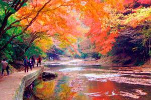 ●養老の滝では、燃えるような紅葉のトンネルの散策をお楽しみ下さい。