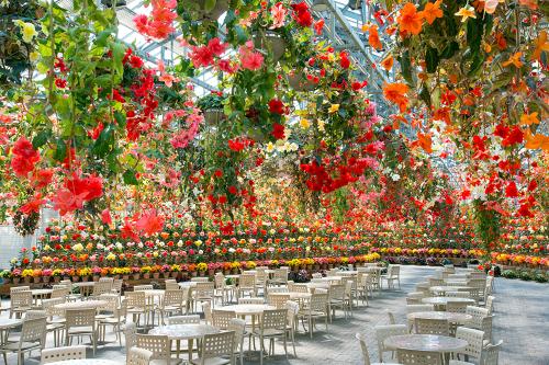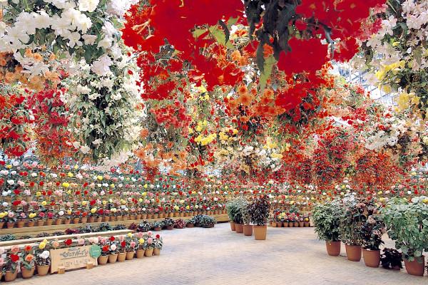 なばなの里では、最初に国内最大級のベゴニアガーデンの鑑賞。年中満開の大輪ベゴニアをはじめ、世界各国から集めた数百種・1万2千株の絢爛たる花々を常時栽培・展示されています。
