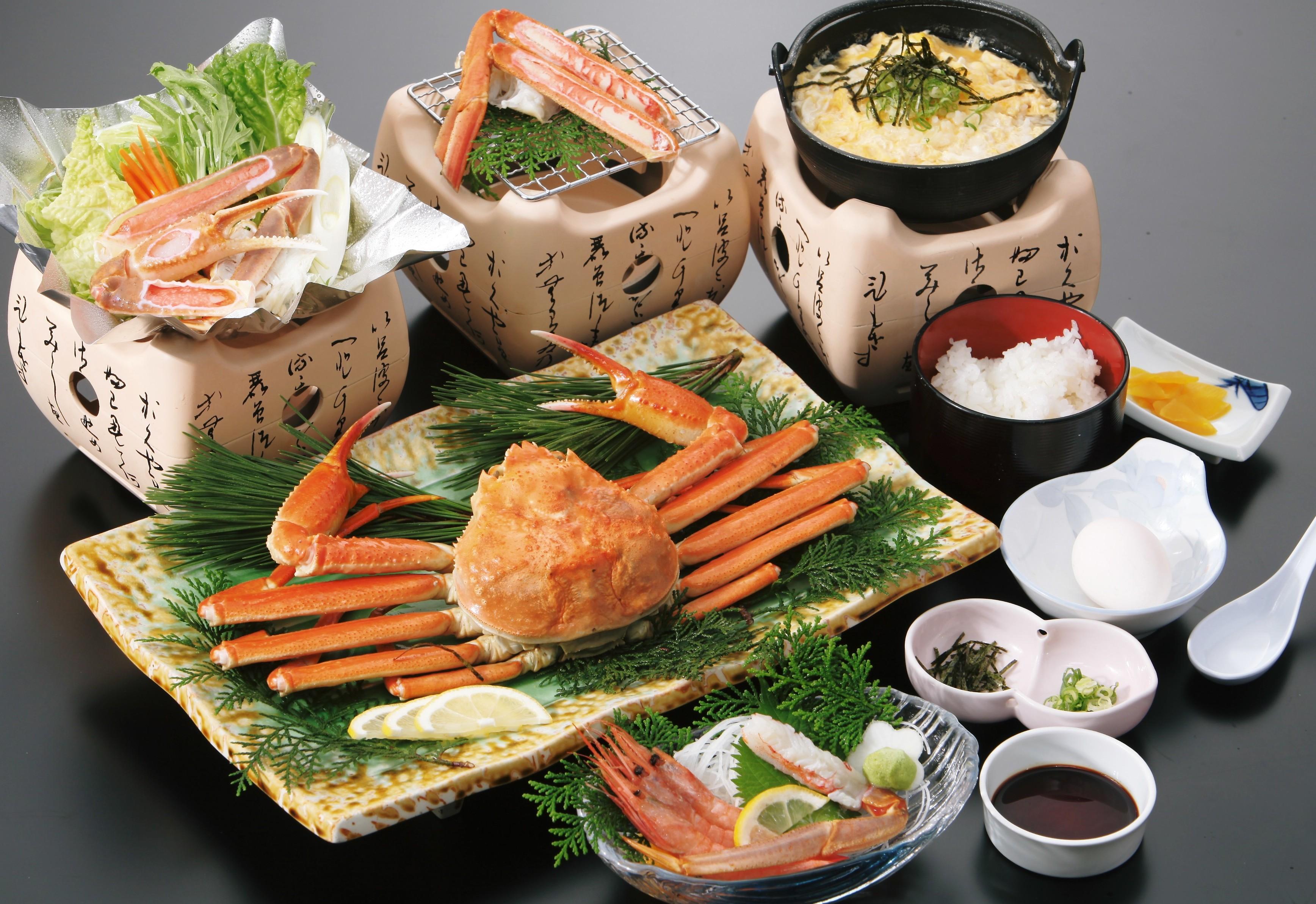 ●日本海の漁師町漁港でズッシリ450g前後の姿一枚付ズワイガニ尽くし料理を堪能と年始の海産物買物も楽しもう!