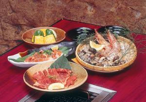 ●磨洞温泉で洞窟の不思議な空間で名物の山海賊焼料理をお楽しみいただきます。