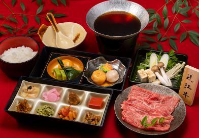 ●夕食は石山寺門前のお食事処で日本三大和牛の近江牛鍋と近江のおばんざい8種をお召し上がりいただきます。
