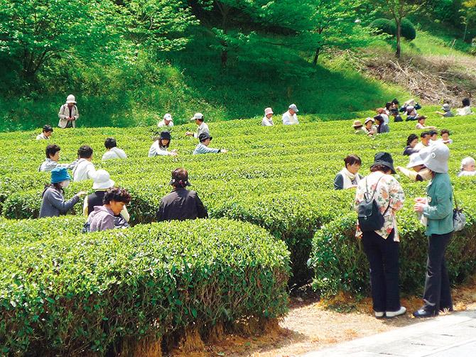 ●岡山一のお茶の産地・美作。その地で育まれたお茶の摘み取り体験をしていただきます。