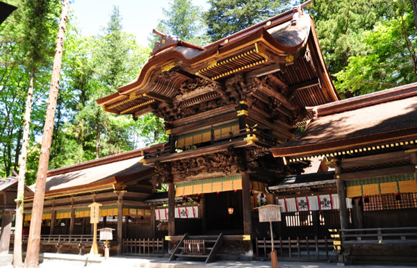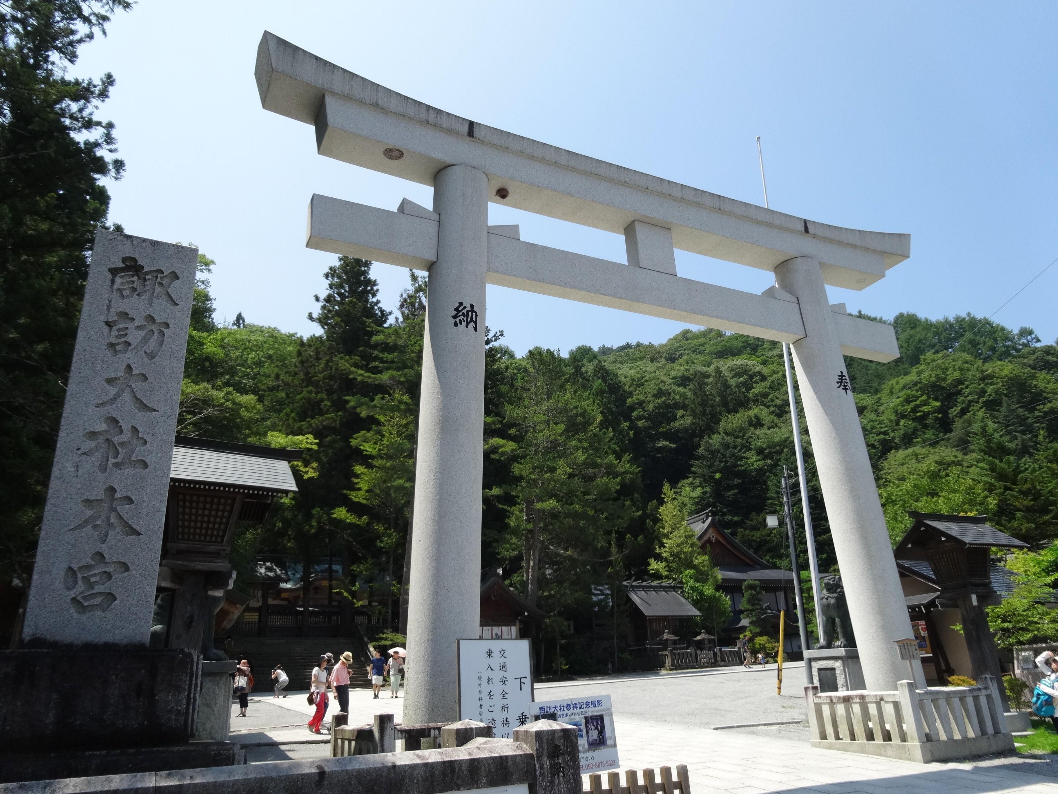 全国に1万以上の御分社をもつ諏訪神社の総本社。諏訪湖の南に上社本宮・前宮、北に下社秋宮・春宮があり、この4宮を諏訪大社と称する。上社本宮は中央道諏訪ICの近くにあり、貴重な建造物が最も多く残る。御祭神は建御名方神[たけみなかたのかみ]で、農耕や勝負、家内安全、弥栄の神として崇められている。