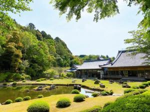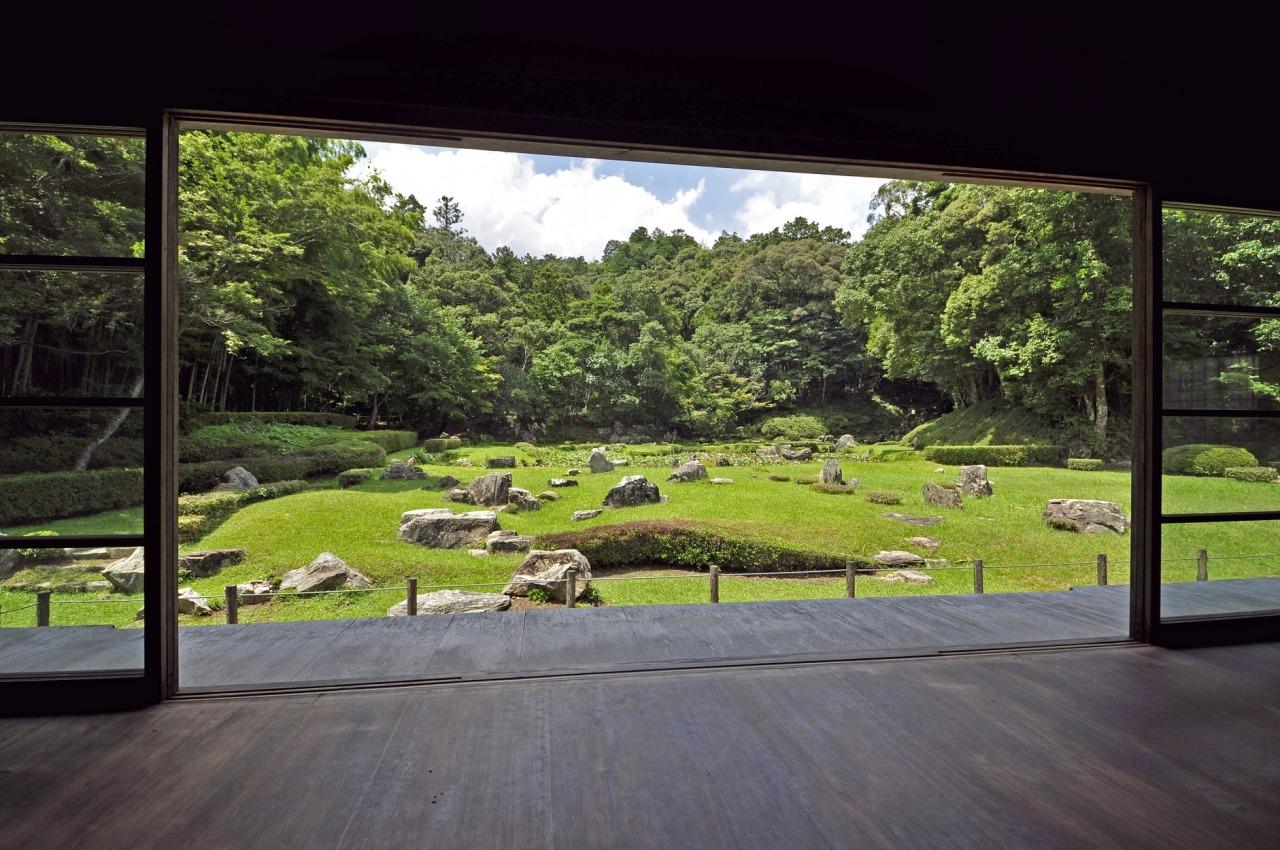 庭園は無染池(心字池)を有し、室町時代の枯山水石庭の典型的なもので簡素にして、豪放なたたずまいを見せています。