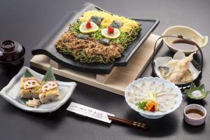 ・瓦そば・炊き込みご飯・お吸い物・ふぐ天ぷら・ふぐタタキ・茶碗蒸し・香の物