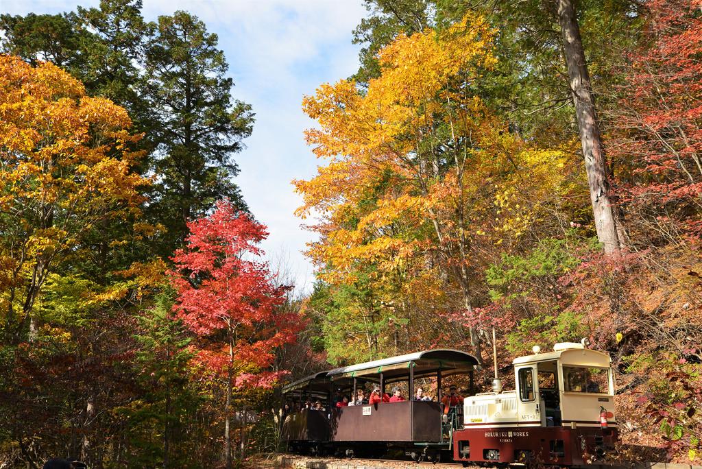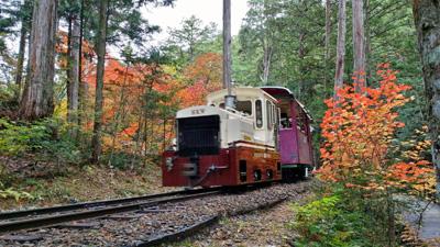 心癒される圧巻の紅葉と森林浴!トロッコ列車にもご乗車。