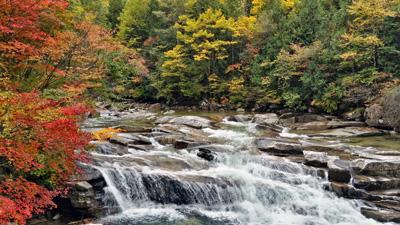 日本三大美林の一つ、赤沢自然休養林に至る渓谷沿いの樹林が色づき、檜林の深い緑に映える紅葉を楽しめる。オープントロッコもあり、乗りながら眺める極彩色の森林は圧巻。10月中旬から下旬にかけてが見頃。