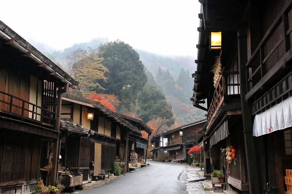 まず秋色の妻籠宿へ。懐かしさと郷愁を感じる情緒いっぱいの宿場町の散策タイムです。