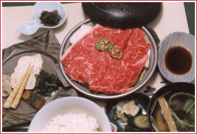 ●昼食は郷土料理の店「京家」で飛騨牛の焼きしゃぶ御膳をお召し上がりいただきます。