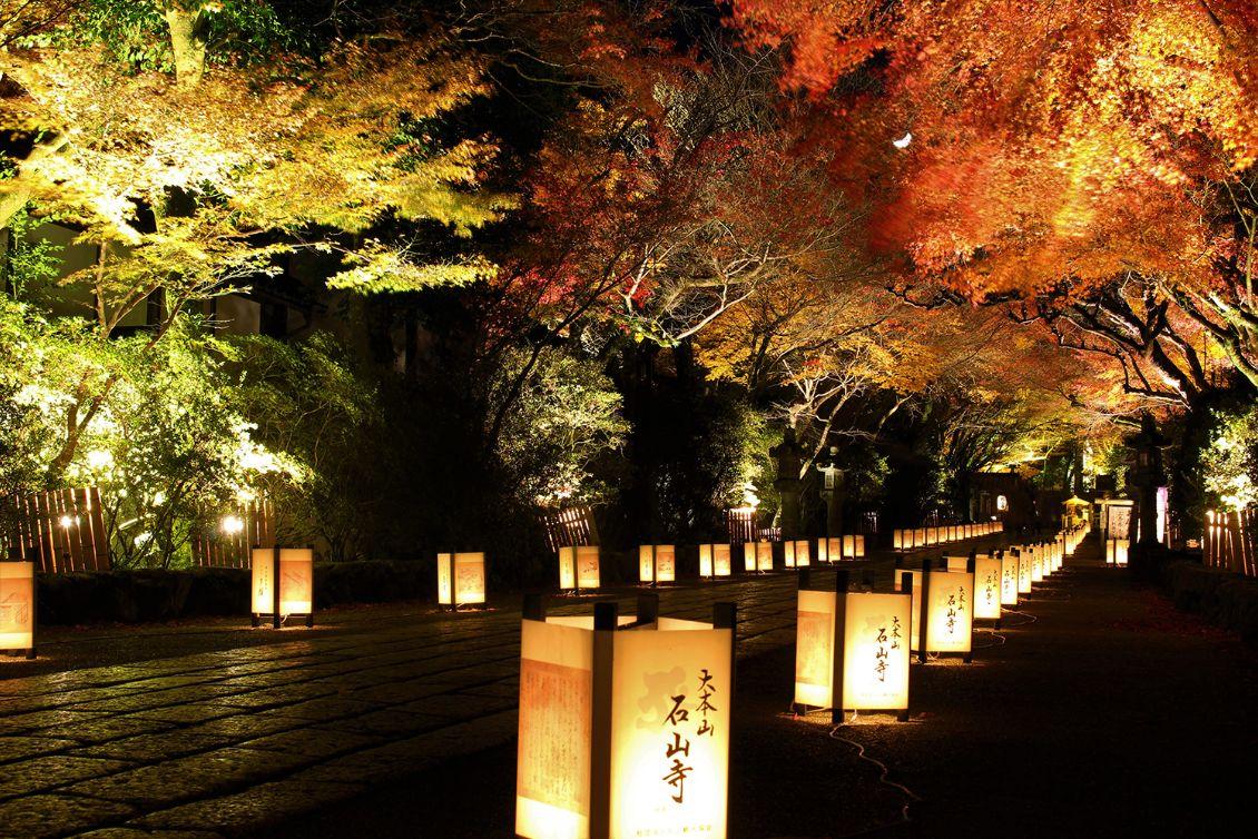 そして本日のメイン石山寺の紅葉ライトアップイベント「あたら夜もみじ」を鑑賞。鮮やかに本堂、多宝塔など国宝建造物を美しく照らすライトアップ空間をご堪能いただけます。