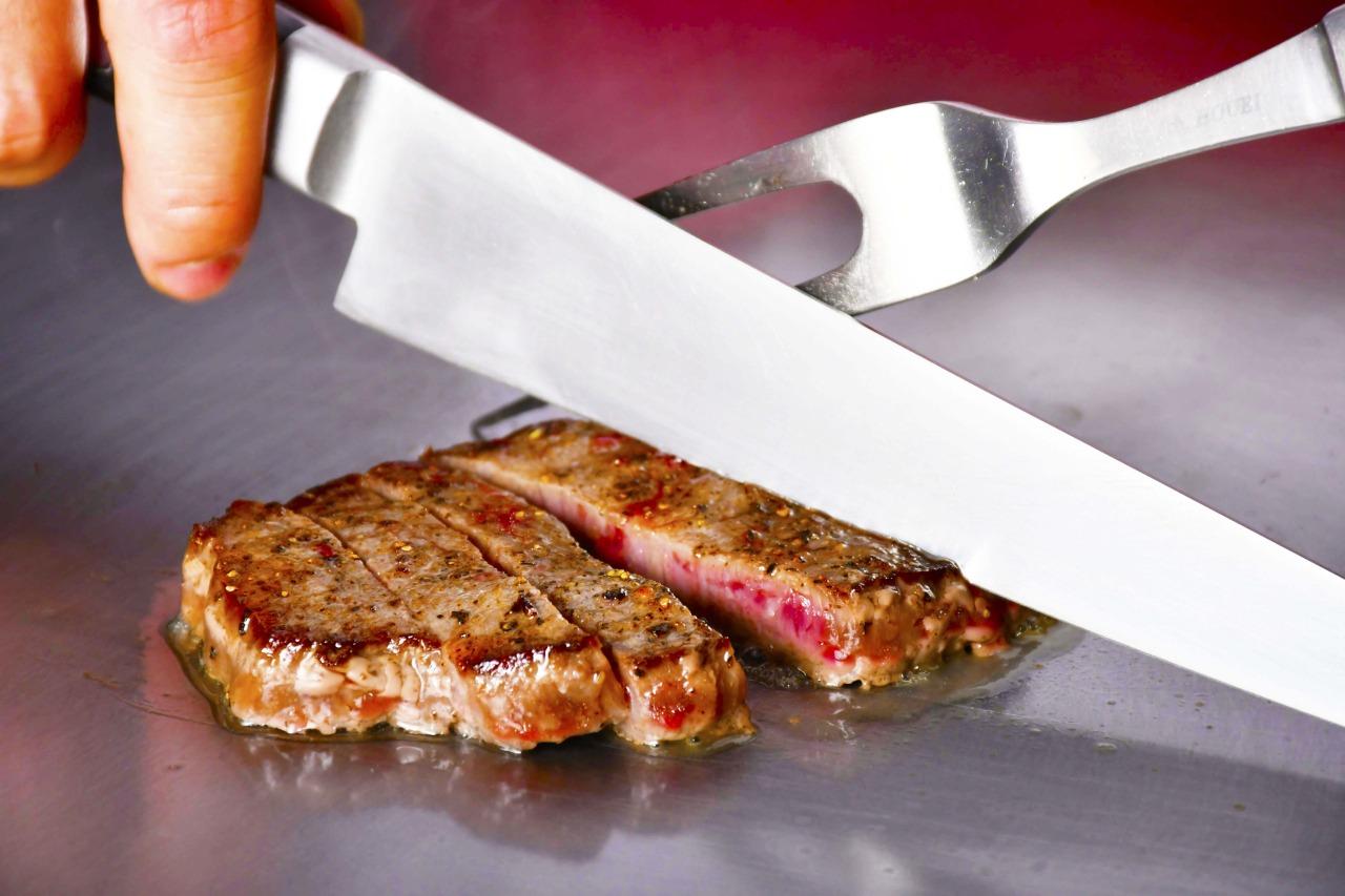 ●『近江牛ステーキ、鉄板焼コース料理』をお召し上がりいただきます。シェフが目の前で焼き上げてくれるステーキはまさに絶品です!