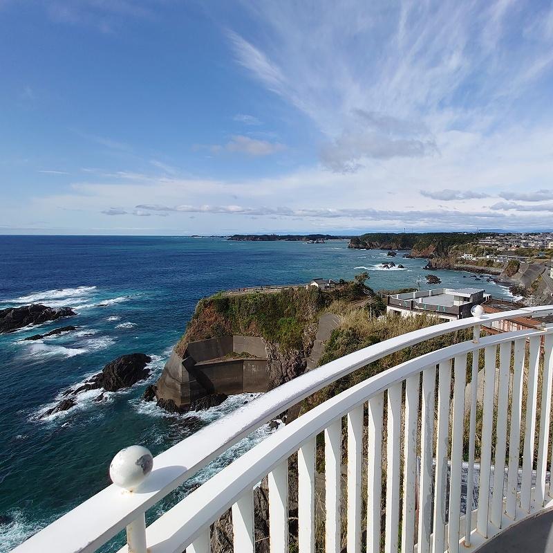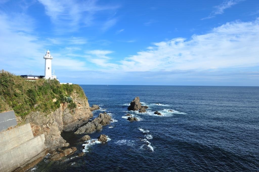 太平洋の荒波が寄せる岸壁の先端に立つ白亜の灯台です。ここの美しい風景は、多くの画家たちにも親しまれ「絵かきの町」として有名です。