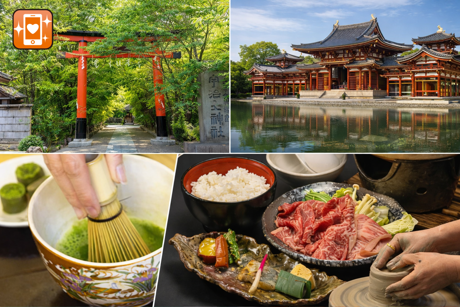 【TV取材ツアー】宇治の世界遺産さんぽと本格抹茶体験!近江牛すき焼きランチと信楽焼体験を楽しむ大人のゆったり旅♪