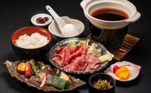 昼食は、日本三大和牛のひとつ👉 近江牛のすき焼き御膳をご用意。