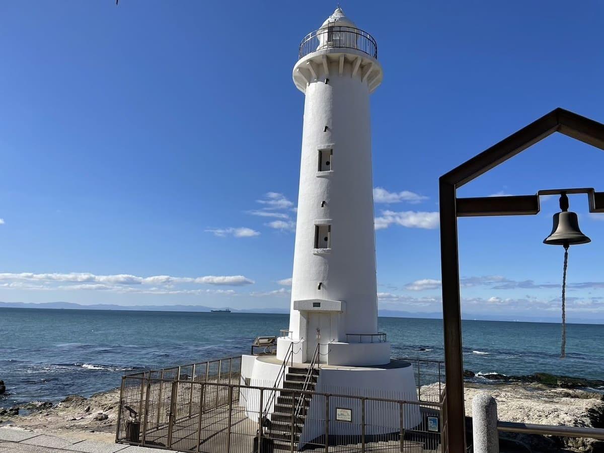 美浜町のシンボル的存在の野間埼灯台は、大正10年に建てられた愛知県最古の灯台です。広がる空と海、一面ブルーの中にひときわ目立って映える高さ18メートルの灯台。また伊勢湾に沈む夕日を楽しむ最高のスポットであり、恋人たちの聖地として人気の高いスポットになります。