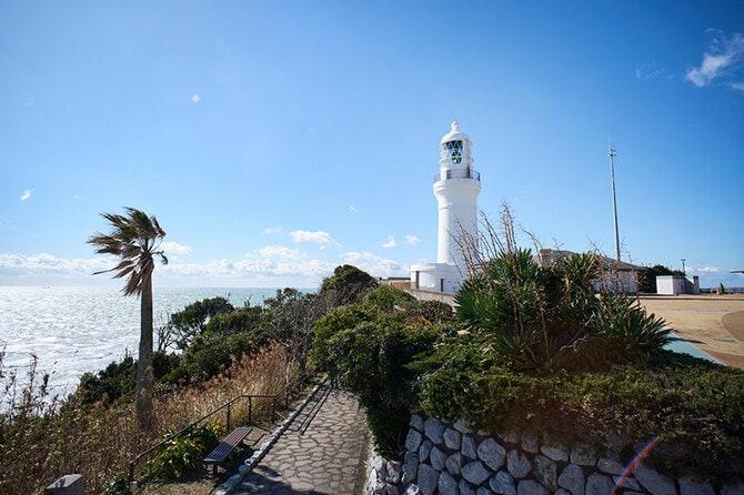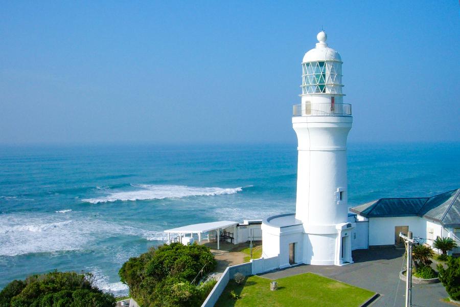 駿河湾と遠州灘に面した静岡県最南端の岬に立つ「御前埼灯台」は、1874年にイギリス人技師の監督のもとに誕生した白亜の洋式灯台。「日本の灯台50選」にも選出され、内部を上ることもできます。踊り場からは大海原が広がり、晴れた日には富士山や伊豆半島まで見渡せる絶景スポット。美しい白亜の塔は、青い空と白い雲、そして蒼い海に映える写真スポットとしても人気です。夜にはライトアップもされ、幻想的な雰囲気に。