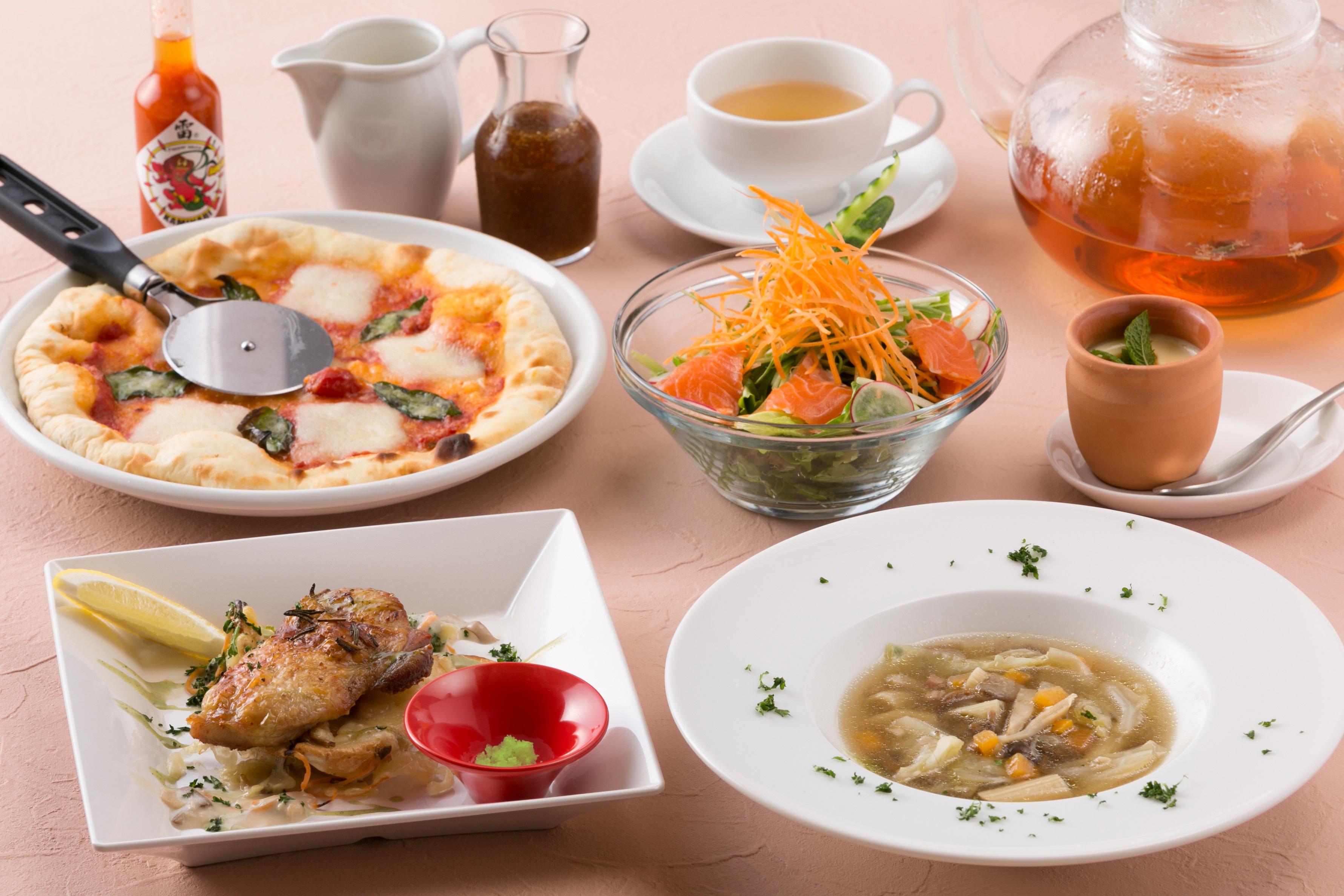 ●レストラン「魚沼スイーツガーデン ナトゥーラ」でランチタイム。地元食材にこだわったイタリアンをお召しあがりいただきます。