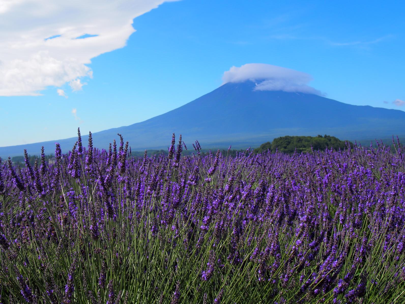 約10万株の紫色のラベンダーが咲き誇り、河口湖一帯がハーブの良い香りに包まれる。アロマテラピーにも用いられることの多い癒やし系のラベンダーを楽しみながら、初夏の河口湖をゆったり散策してみよう。
