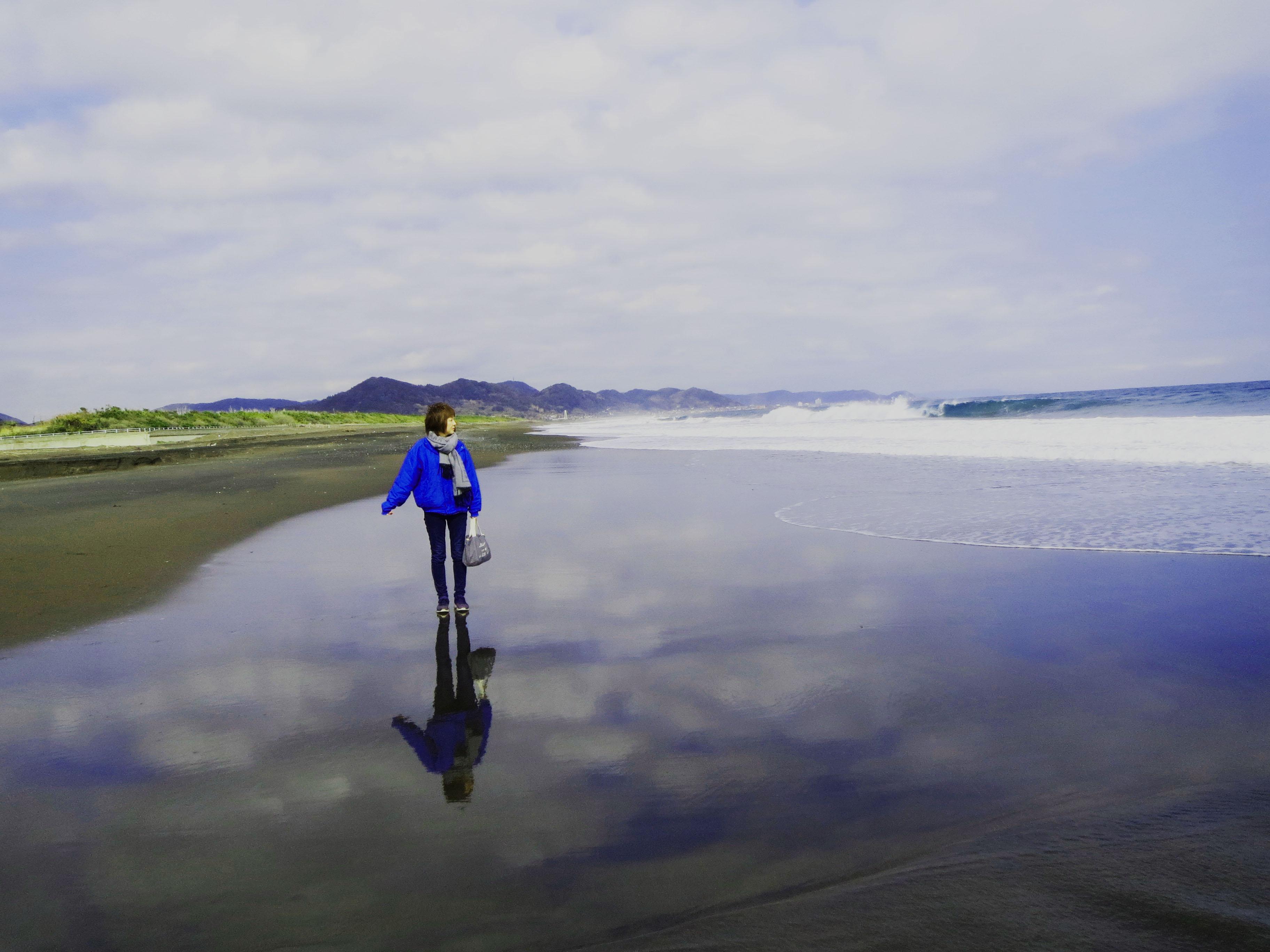 続いては知る人ぞ知る隠れた絶景スポット!房総のウユニ塩湖といわれる三島海岸へ。砂が非常に細かく、波打ち際が完全に鏡になり、空を写してウユニ塩湖のようになります。「天空の鏡」と呼ばれる巨大な鏡を体験!