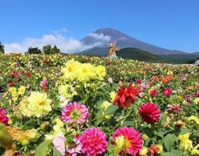 世界遺産・富士山をバックに3万株の「ダリア」、2千株の「ペンタス」、6万本の「コスモス」を鑑賞できる花の祭典です。