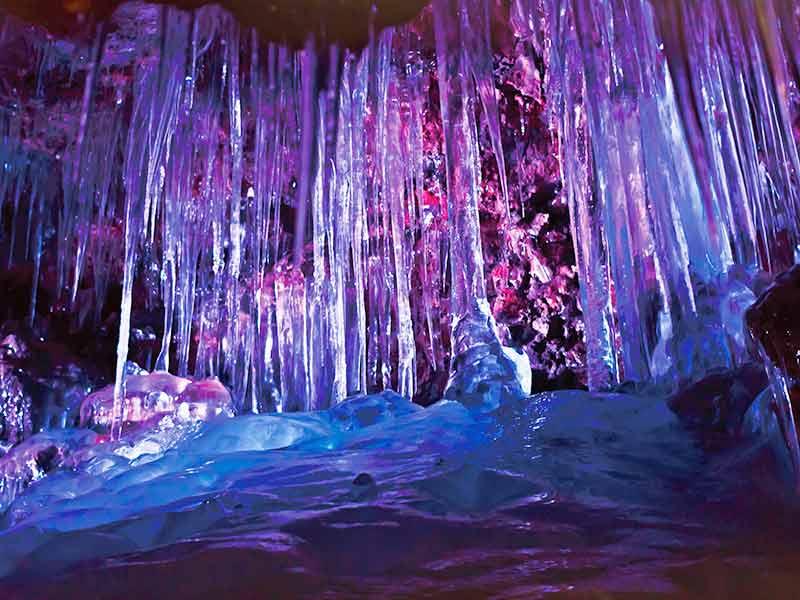 ●夏でも涼しい!富岳風穴・鳴沢氷穴も見学。1年中通して、洞内の気温は0度~4度を保っています。