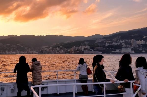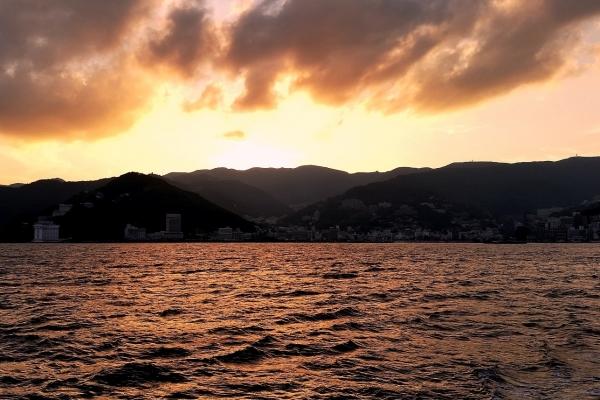 船の上からでしか味わえない輝く夕日とマジックアワーに包まれる幻想的な風景をお楽しみください。夕暮れ時の熱海市街地を海上から眺める非日常体験を満喫しましょう。
