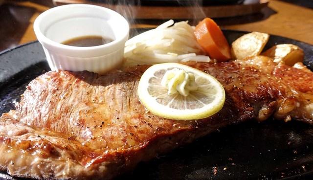 ●大好評の特選国産霜降牛ステーキランチをお召し上がりいただきます。