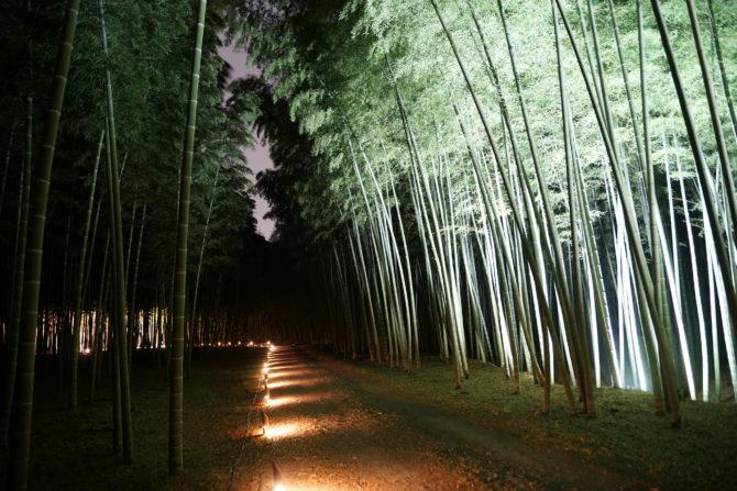●圧巻の竹林ライトアップ!暗闇に浮かび上がる幻想的な竹林を楽しみましょう。