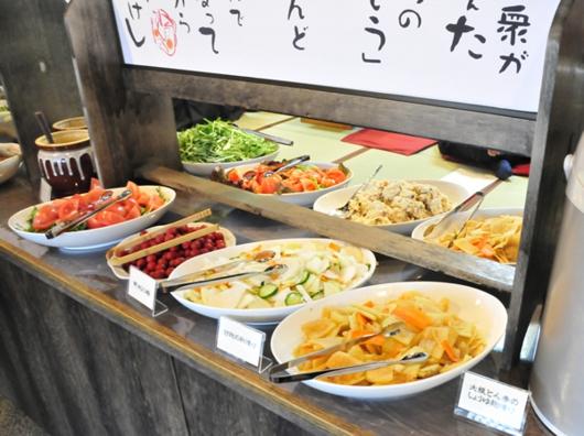 ランチは甲州・郷土料理の店「菓々茶寮」で名物のあわびの煮貝に煮貝ごはん・ほうとう鍋と郷土料理のミニバイキングをお召しあがりいただきます。