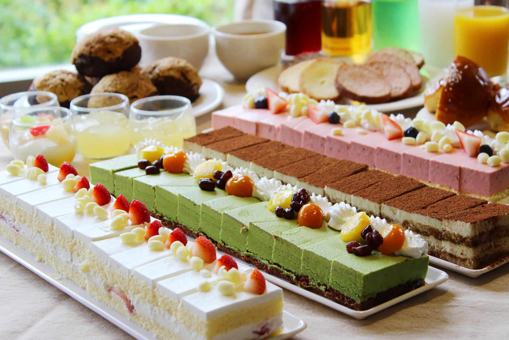 四季折々の厳選されたケーキの数々、自社工場で製麺したオリジナルの生麺を使用したパスタ。他にも、カレー、ピザ、サラダ、ドリンク類など、お好きなものをお好きなだけどうぞ。