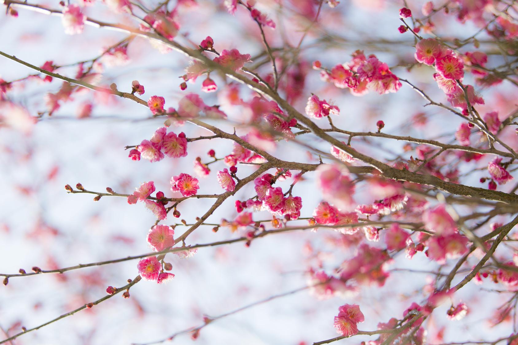 樹齢100年を越える梅の古木を含め、59品種・472本の梅が咲き誇り、早咲き→中咲き→遅咲きと、順番に開花。梅まつり期間中、梅を存分にお楽しみいただけます。