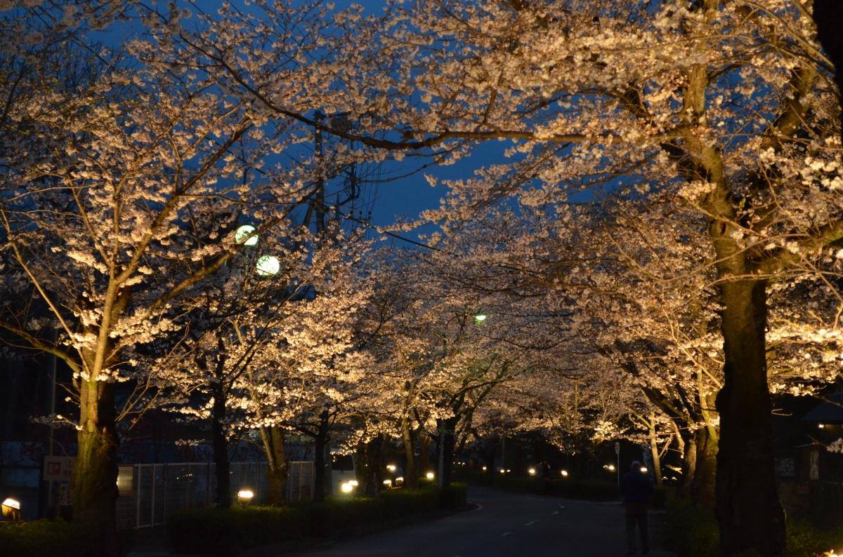 締めは長瀞のお花見で一番のお勧めの「通り抜けの桜」の鑑賞。、ライトアップされた桜並木は幻想的な世界を演出します。