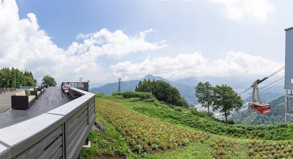 山頂までを7分でつなぐロープウェイは、全長1,300m、世界最大級166人乗りです。眼下に広がる大パノラマをご堪能ください。山頂に上がると、そこは高原の花々が咲き乱れる絶景リゾート。眼前には雄大な山々が広がり、四季により様々な表情を見せる花々や風景をお楽しみいただけます。
