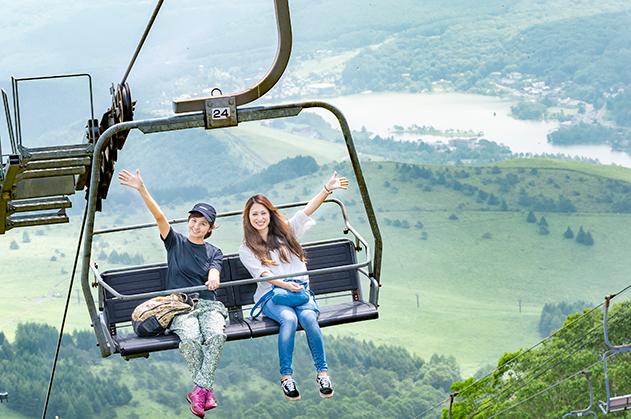 車山山頂へのアクセスは、山麓まで車で向かい、そこから約15分リフトを乗り継ぐことで辿りつきます。